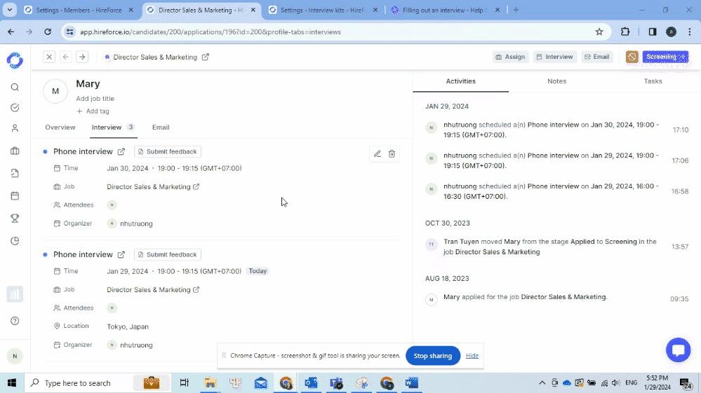 Interview kits will be available as a feedback form when evaluating candidates in the relevant stage.