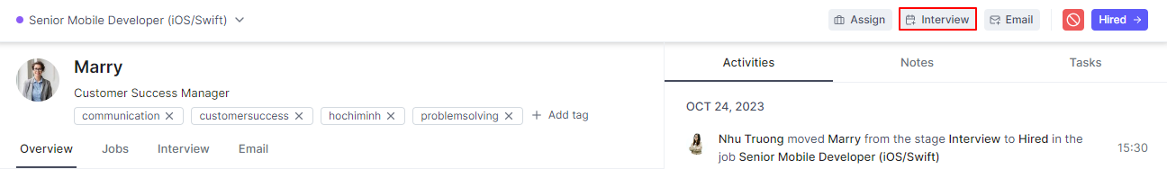 2. Click the **Interview** button on the right of profile.&#x20;