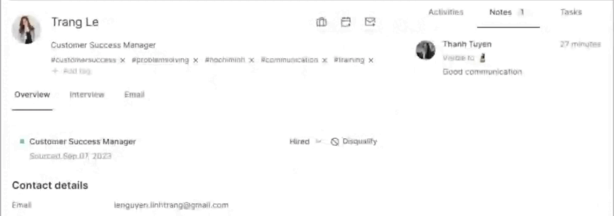 Create notes on Candidate profile