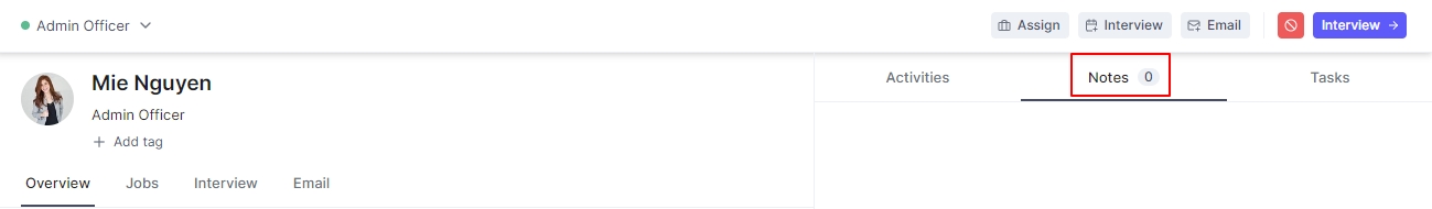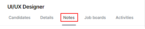 You can easily capture important information by taking notes directly on a candidate’s profile or job, making it accessible to your team. Users with the Admin role have visibility into all notes, including private ones. You can create, and edit all notes as needed and delete notes on your own