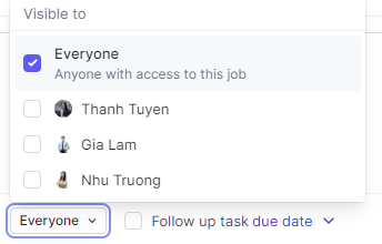 Limit the visibility of notes: By default, notes are visible to everyone with access to the job or candidate profile. To limit visibility, click the “Everyone” button and select specific team members. The list will display Administrators and Hiring Team members for that job.