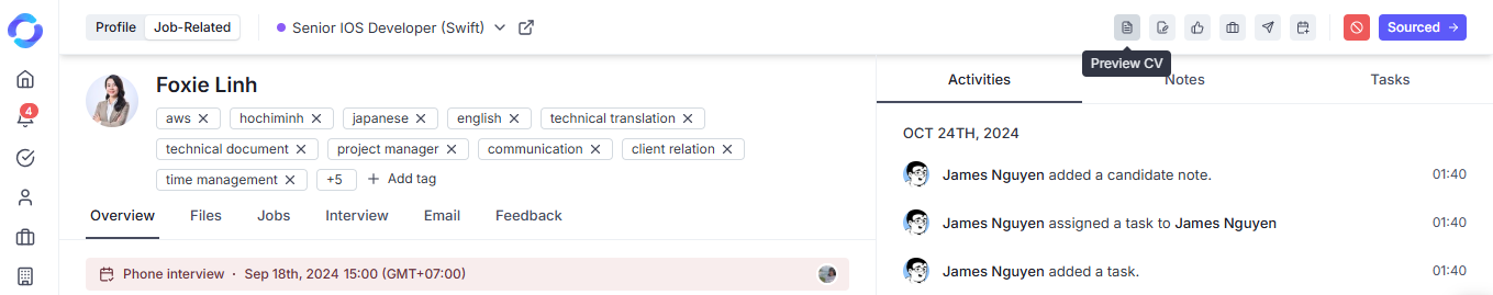 2. Click the **Preview CV** icon on the top menu.