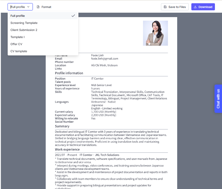 You can download the Candidate Profile Template as follows: