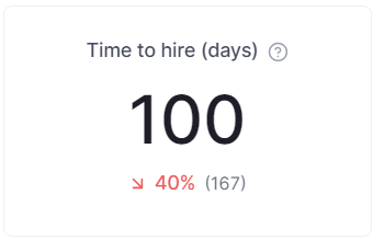 <table data-header-hidden><thead><tr><th width="222"></th><th></th></tr></thead><tbody><tr><td><img src="https://content.gitbook.com/content/N3tRAQQ8J1tUuEYMPUNy/blobs/N7tQEk383eTMEEyph0cH/image.png" alt="" data-size="original"></td><td><p><strong>Time to hire</strong></p><p>It reflects the average number of calendar days, it takes for a candidate to enter your hiring pipeline and get hired (date of moving to the "Hired" stage).</p><p><em><strong>Note</strong>: Based on applicants who moved to the Hire stage within the selected time range.</em></p></td></tr></tbody></table>
