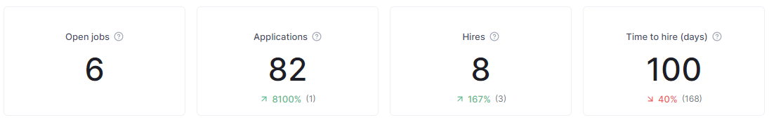 <table data-header-hidden><thead><tr><th width="161"></th><th></th><th data-hidden></th></tr></thead><tbody><tr><td><img src="https://content.gitbook.com/content/N3tRAQQ8J1tUuEYMPUNy/blobs/ow8QWvoZLYlAhrbcnZrj/image.png" alt=""></td><td>The total number of jobs published within the selected time range. This count reflects the date the job became visible to applicants, not the date it was initially created.</td><td></td></tr></tbody></table>