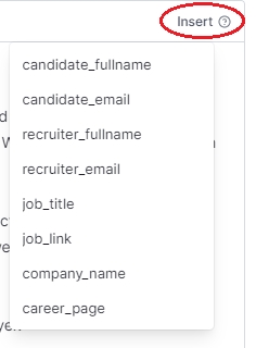 Email subject: The subject of the email sent to candidates. You can use personalization like {job_title}