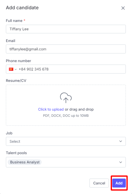 You can also add candidates to a talent pool when adding a new candidate on the Candidate page or Job detail page, following the same process as described above.
