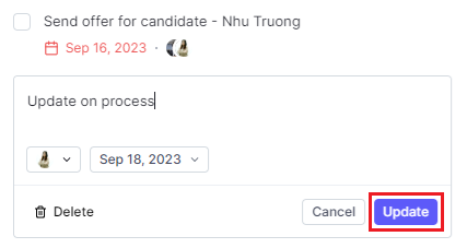 Note: Tasks are created on the Candidate profile's note or Job's note, cannot be edited directly. To edit them, you have to edit notes.