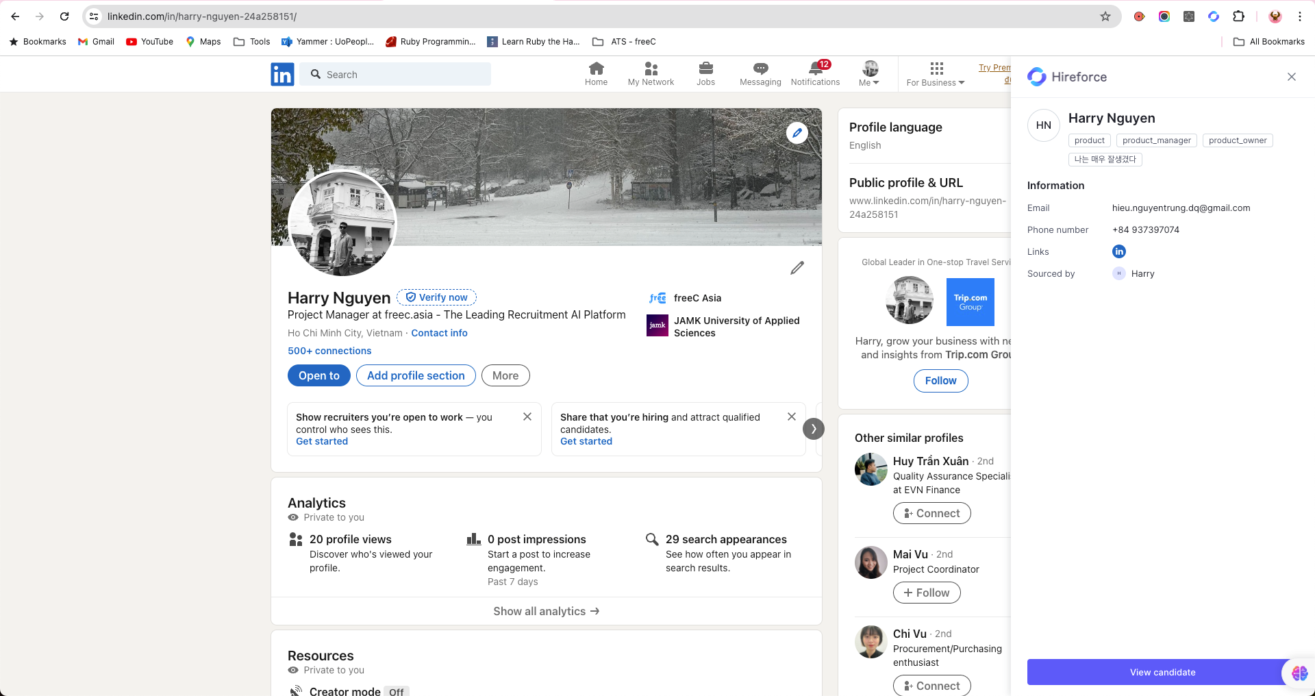 * If it exists in your Hireforce account, you click **View Candidate** to view the profile.