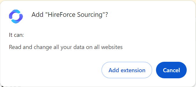 3. A pop-up appears ⇒ Click **Add extension** to Completed Hireforce Sourcing Chrome Extension installing.